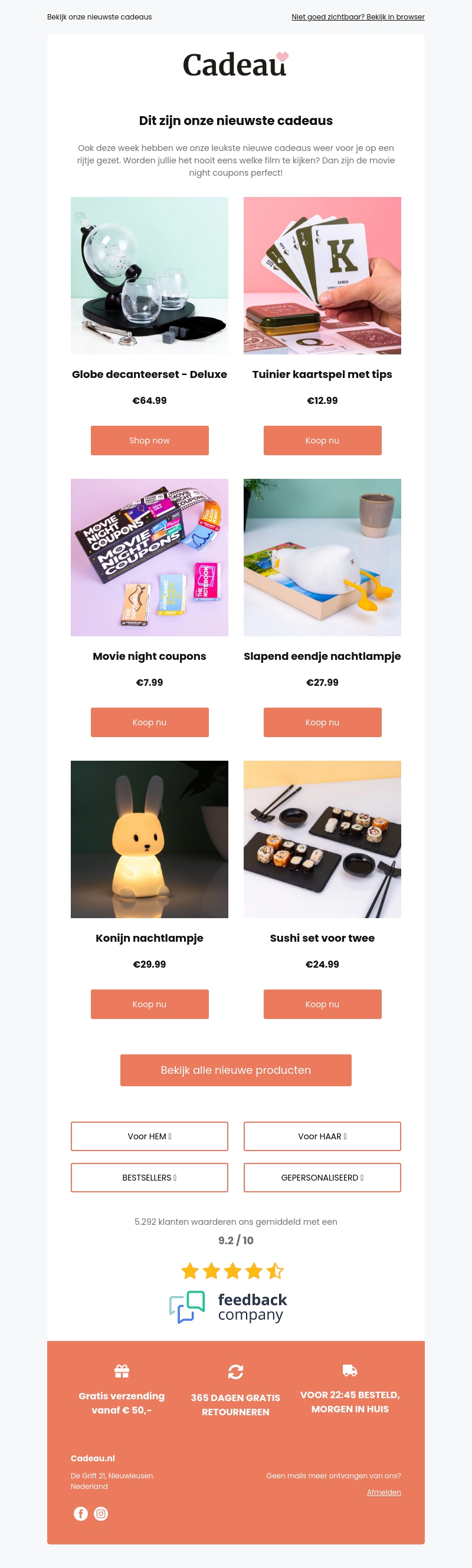 Deze week presenteren we onze nieuwste collecties van unieke en luxe cadeaus. Ontdek een stijlvolle whiskeyset en vrolijke nachtlampjes die ideaal zijn voor kinderen. Perfect voor filmavonden, of om je interieur mee op te fleuren. Bekijk snel ons aanbod!