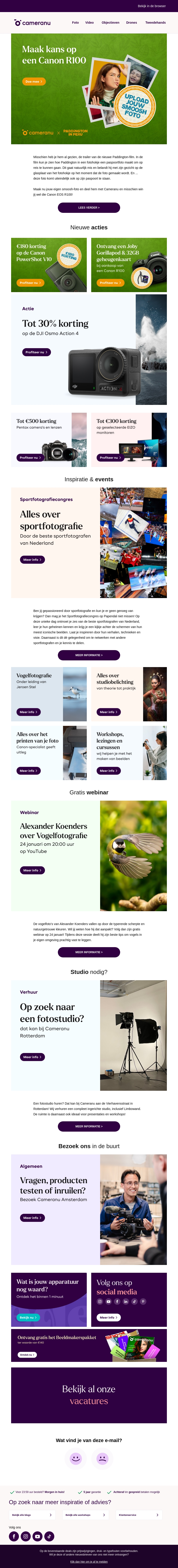 Maak kans op een Canon EOS R100 door je eigen smoosh-foto te uploaden. Doe nu mee en ervaar topkortingen op camera's en accessoires. Ontdek inspirerende tips over verschillende soorten fotografie. Volg een gratis webinar over vogelfotografie en bezoek onze fotostudio voor al je fotobehoeften. Blijf op de hoogte van alle acties en kortingen.