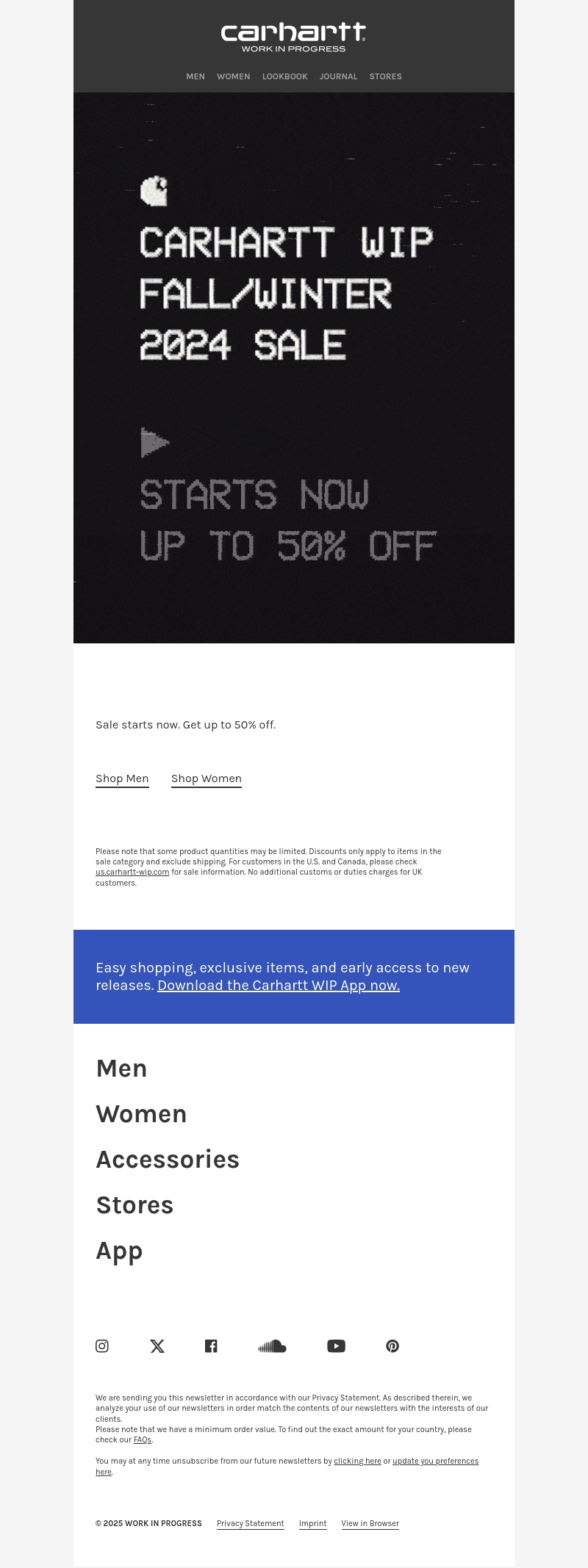 De Carhartt WIP Herfst/Winter 2024 Sale is begonnen! Profiteer van kortingen tot 50% op mode voor mannen en vrouwen. Mis deze kans niet om exclusieve items in te slaan. Bezoek nu onze winkel of shop online.
