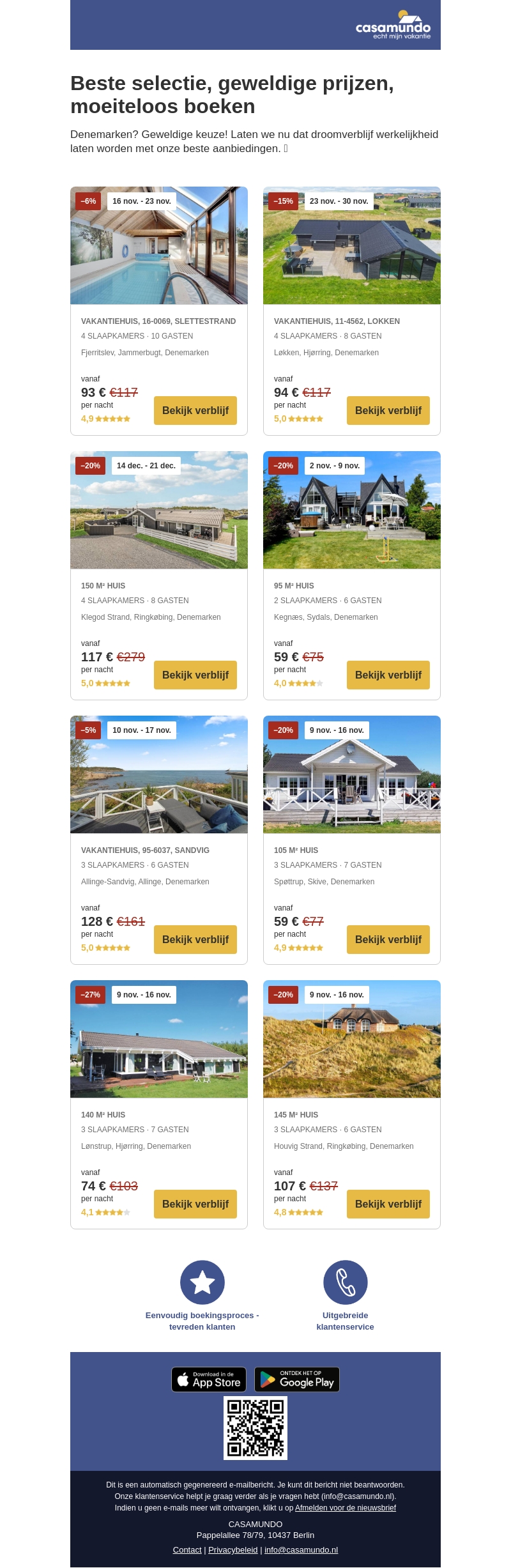 Denemarken biedt u geweldige vakantiehuizen tegen de beste prijzen. Bekijk onze zorgvuldig geselecteerde accommodaties en geniet van een moeiteloze boekingservaring. Laat uw droomverblijf werkelijkheid worden met onze exclusieve aanbiedingen!
