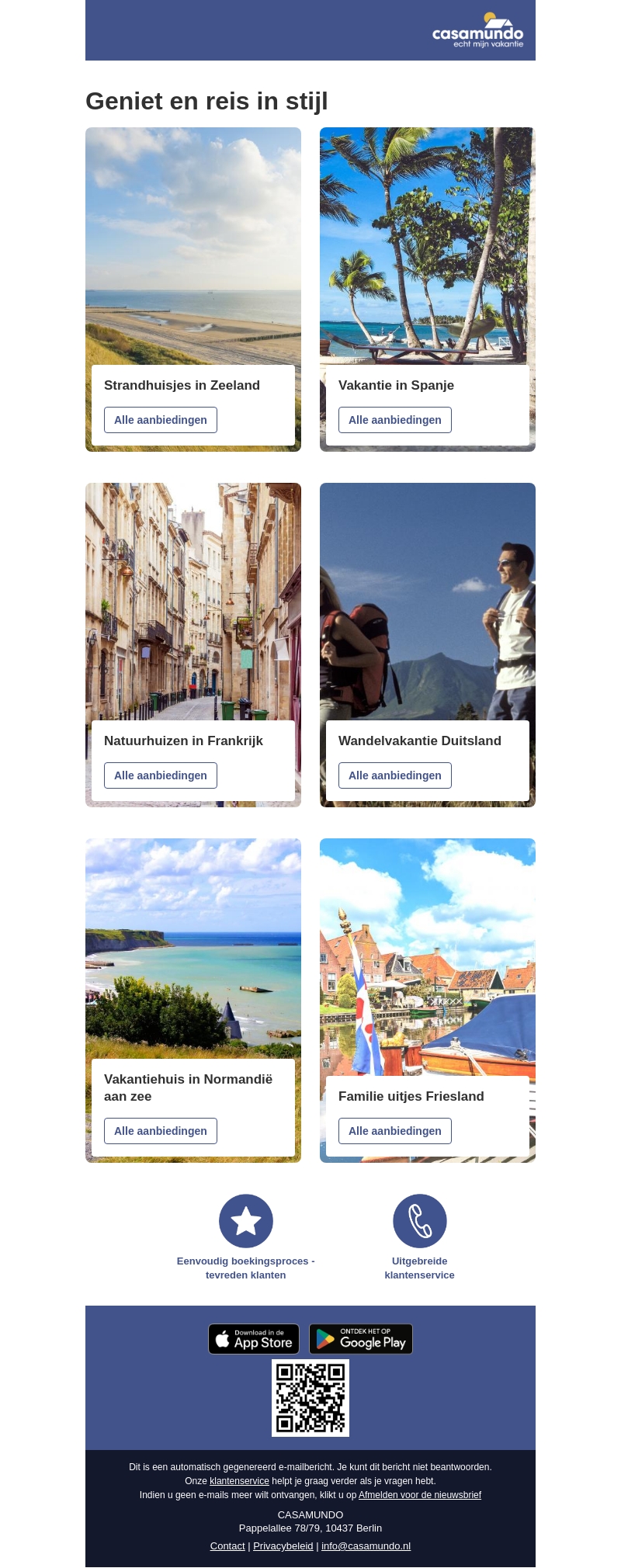 Geniet van een geweldige vakantie met Casamundo. Ontdek strandhuisjes in Zeeland, vakantie in Spanje, natuurhuizen in Frankrijk, en meer. Ervaar unieke wandelvakanties in Duitsland of een familie-uitje in Friesland. Begin vandaag met het plannen van je droomvakantie!