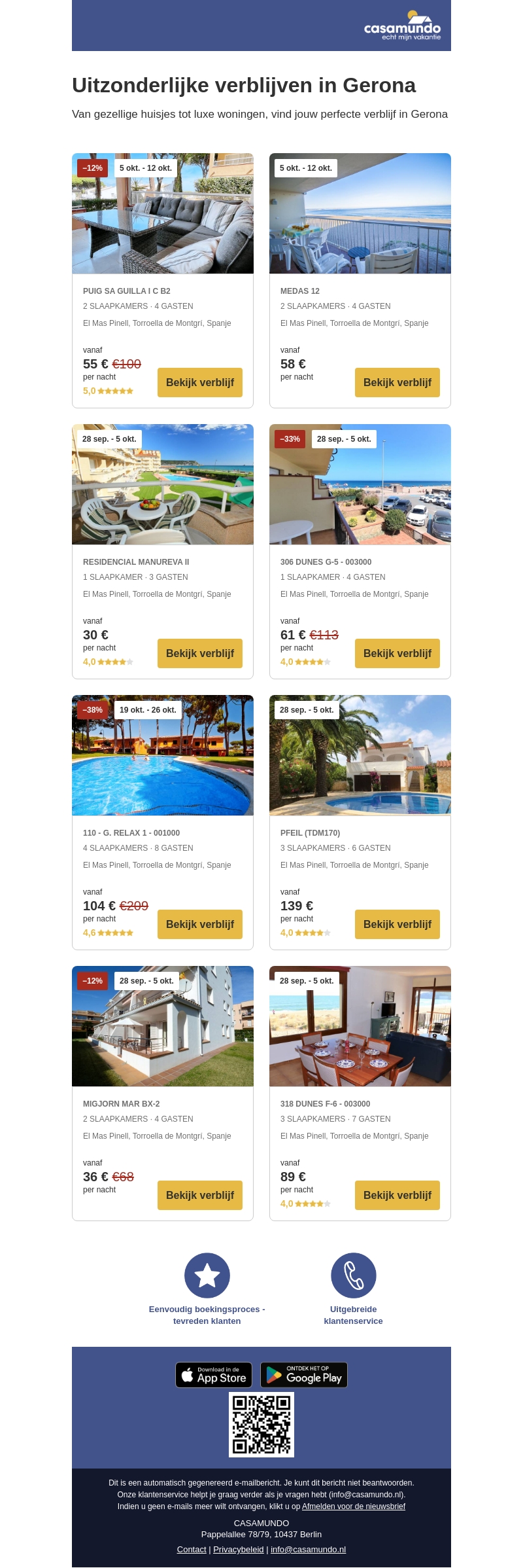 Bewonder de prachtige accommodatieopties in Gerona. Van gezellige huisjes tot luxe woningen, we hebben de perfecte plek voor jouw vakantie. Mis onze speciale kortingen niet op geselecteerde verblijven. Boek nu eenvoudig en geniet van een onvergetelijke vakantie in Spanje.