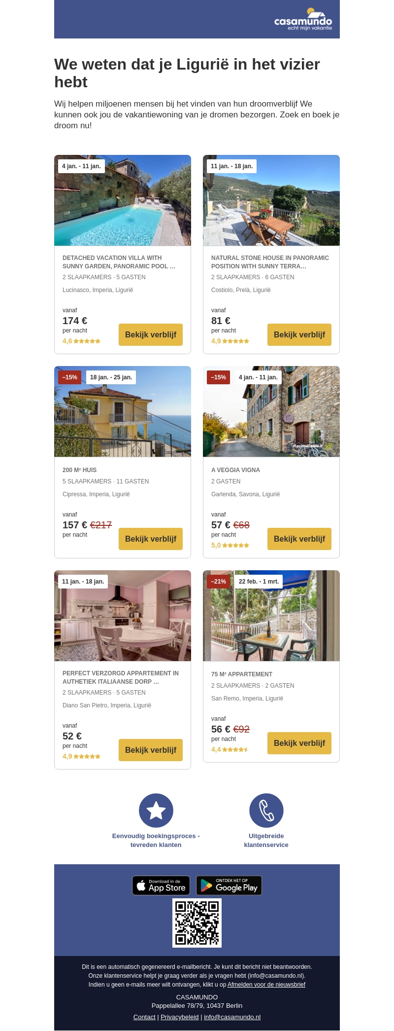 Ligurië biedt de perfecte mix van zon, zee en rust. Ontdek prachtige vakantiehuizen variërend van luxe villa's tot authentieke appartementen. Profiteer nu van kortingen tot 21%. Boek je volgende escapade eenvoudig en begin je avontuur in Ligurië.