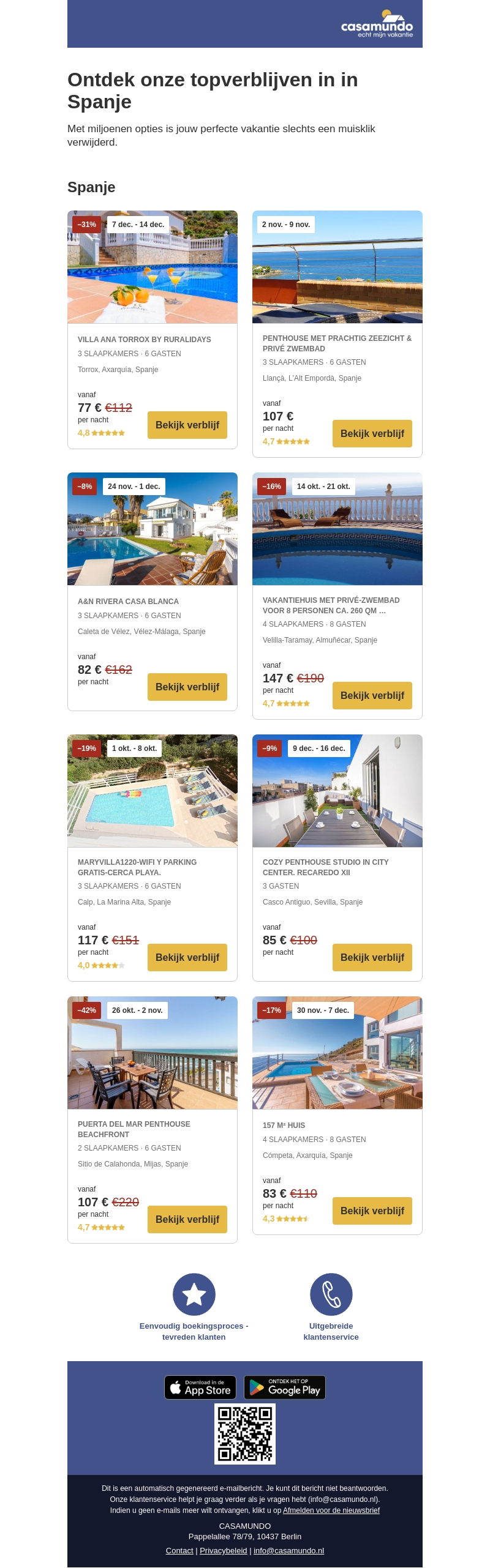 Ontdek onze topverblijven in Spanje! Van prachtige penthouses tot luxe villa's met privΓ©zwembaden, we hebben de perfecte optie voor jouw vakantie. Mis de geweldige kortingen niet en boek nu je droomverblijf.