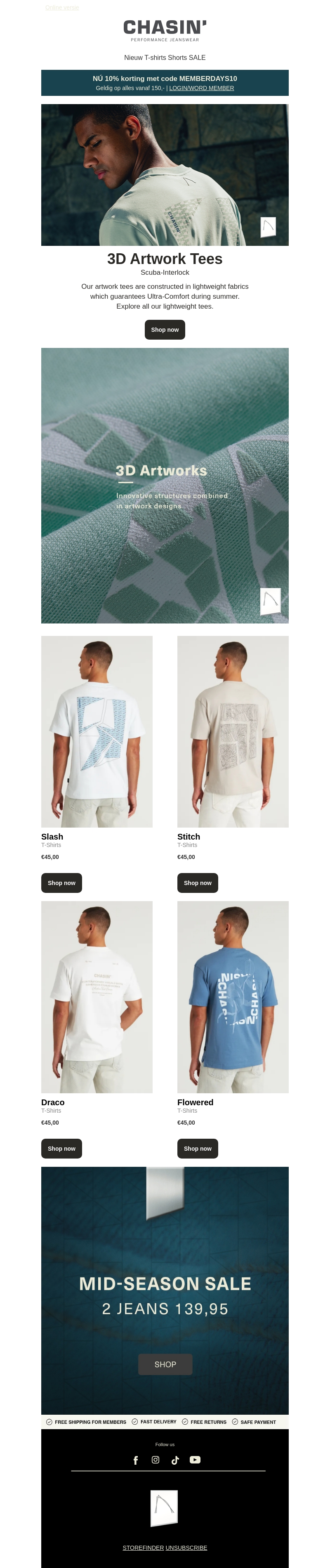 Verken onze collectie 3D Artwork T-Shirts gemaakt van lichtgewicht stoffen voor optimaal comfort tijdens warme dagen. Nu met 10% korting met code MEMBERDAYS10. Beschikbaar vanaf €45,00.
