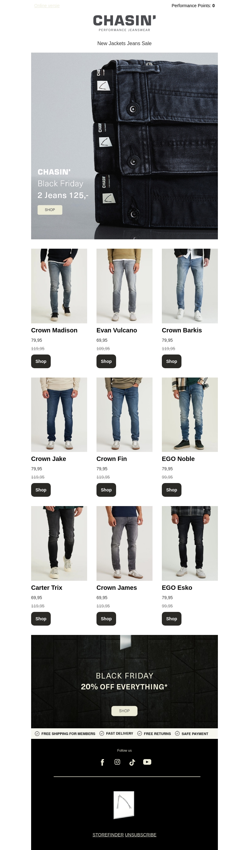 Bereid je voor op Black Friday met CHASIN'. Profiteer van de exclusieve aanbieding: 2 jeans voor slechts 125,-. Er is een ruime keuze aan stijlen, zoals Crown Madison en EGO Noble, met aantrekkelijke aanbiedingen en kortingen. Mis deze kans niet om je garderobe te vernieuwen met stijlvolle en comfortabele jeans.