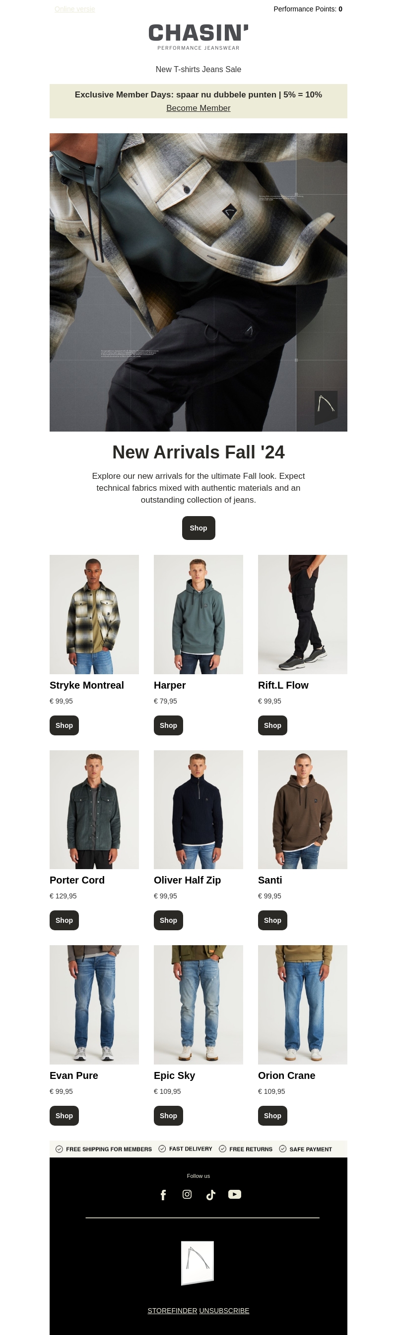 Verken de nieuwste herfstcollectie van CHASIN' voor de ultieme herfstlook. Ontdek technische stoffen gecombineerd met authentieke materialen en een uitstekende collectie jeans. Mis niet de kans om dubbele punten te sparen als lid!
