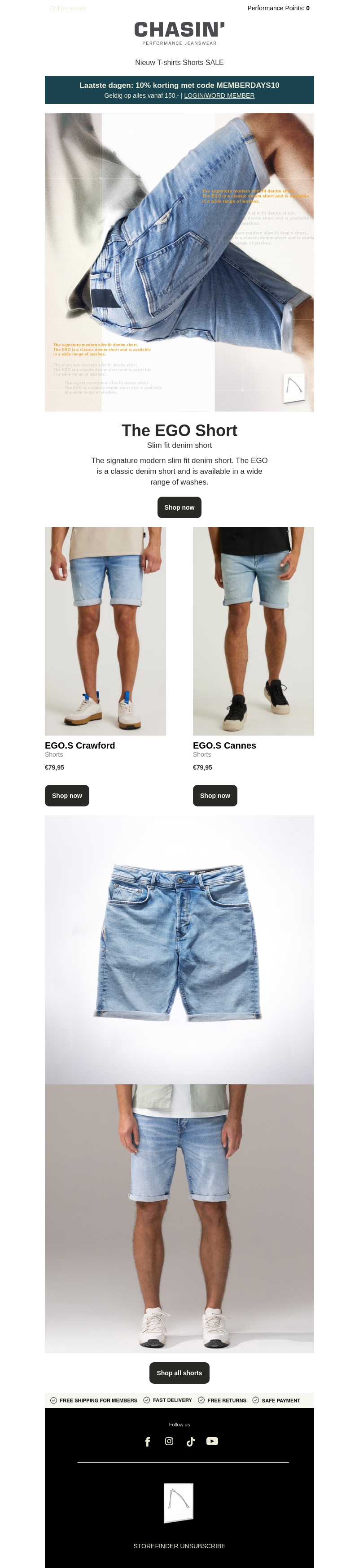 We presenteren de nieuwe EGO Short van CHASIN'. Deze moderne slim fit denim shorts zijn verkrijgbaar in diverse wassingen. Mis het niet, geniet nu van 10% korting met de code MEMBERDAYS10 bij bestellingen vanaf €150. Log in als member en shop nu!