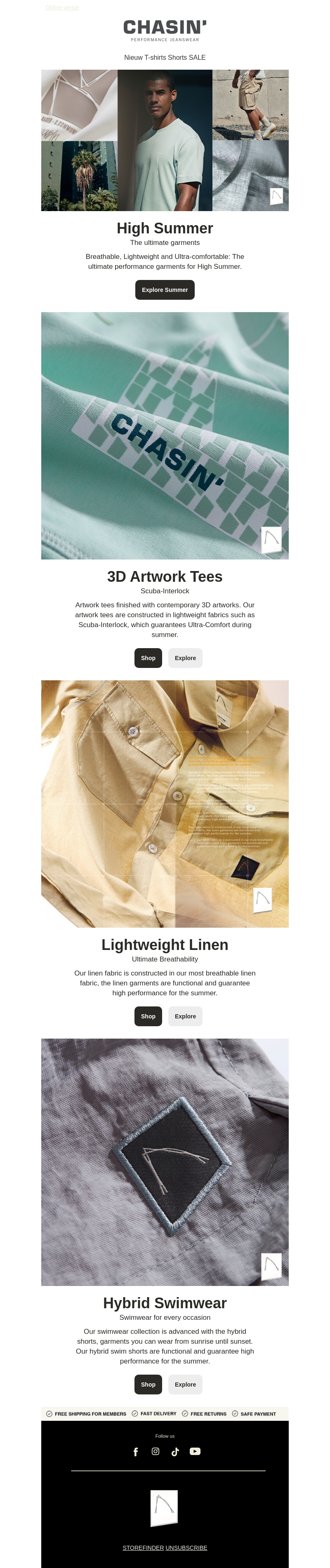 Ontdek onze nieuwste zomerkleding collectie met ademende, lichtgewicht en comfortabele materialen. Van 3D artwork tees tot hybride zwemkleding, perfect voor elke zomeractiviteit. Mis de sale niet!