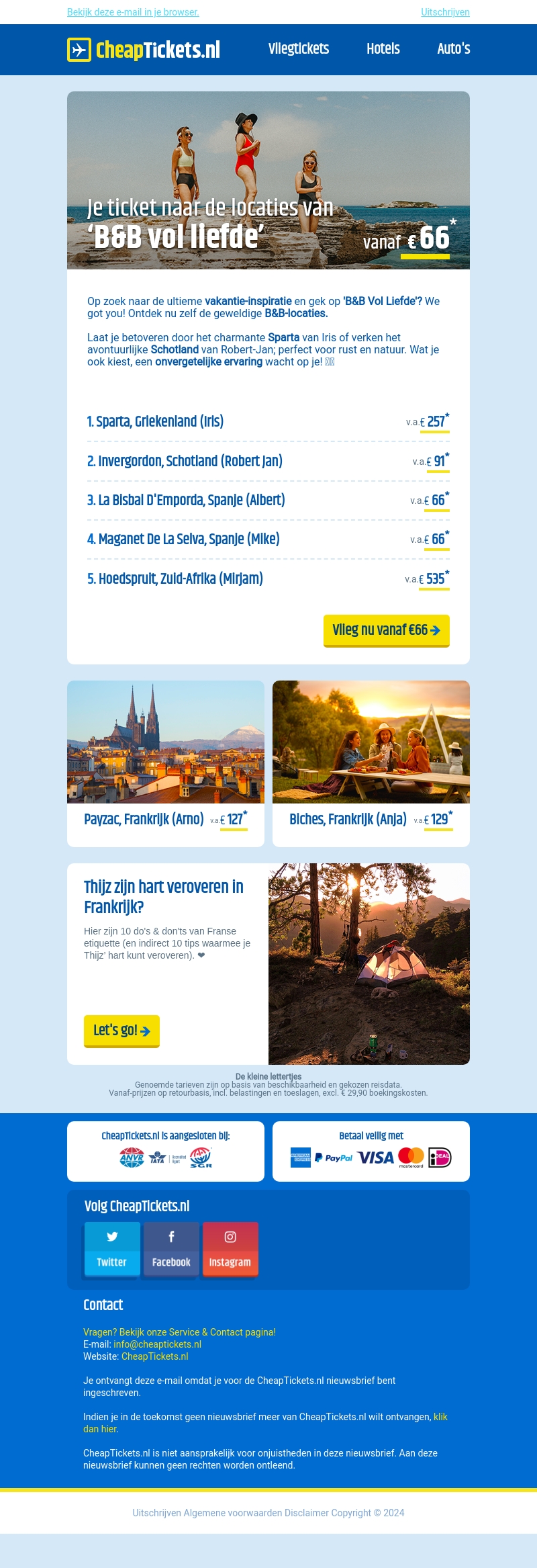 Ben je een grote fan van 'B&B Vol Liefde'? Ontdek nu zelf de prachtige locaties van de show! Boek je reis naar bestemmingen zoals Sparta en Schotland vanaf slechts €66. Laat je inspireren en plan nu je droomvakantie.