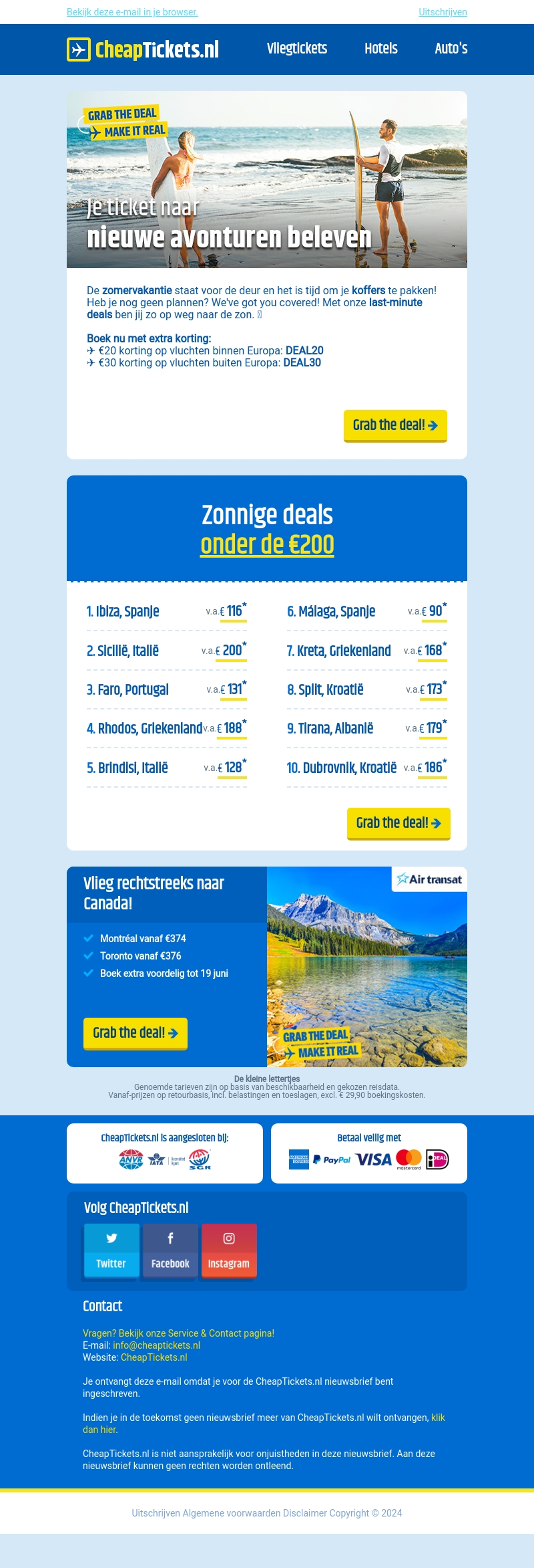 De zomervakantie staat voor de deur en wat is een betere manier om te ontspannen dan met een last-minute reis naar de zon? Boek nu vluchten naar populaire bestemmingen vanaf slechts €67. Ontvang extra korting met speciale kortingscodes. Wees snel en grijp deze fantastische deals!