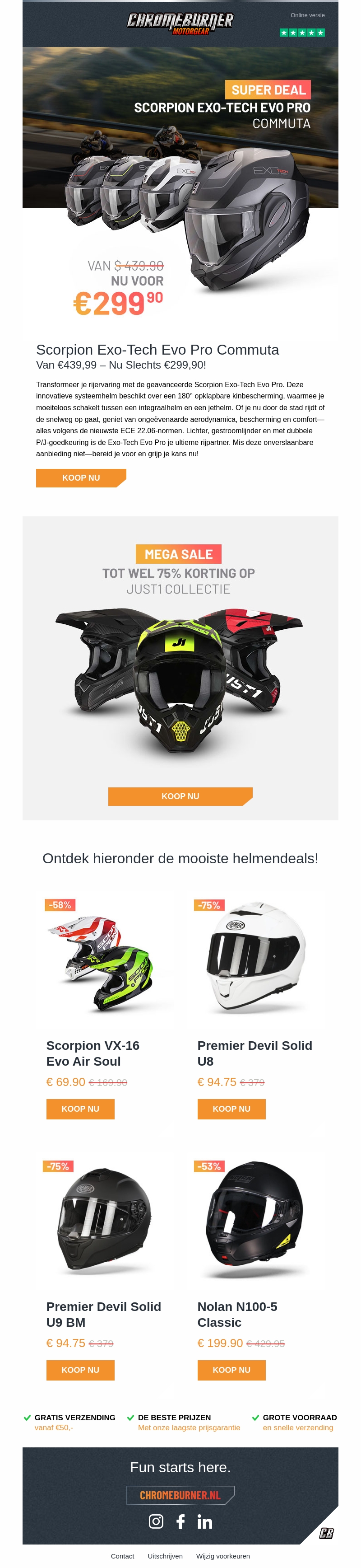 Mis deze ongekende zomerdeals niet! Gigantische kortingen op helmen van topmerken zoals Scorpion en Premier. Transformeer je rijervaring met de geavanceerde Scorpion Exo-Tech Evo Pro. Bekijk het complete aanbod en grijp je kans!