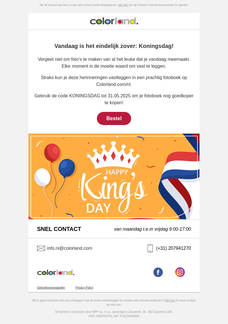 Pak deze kortingscode: KONINGSDAG