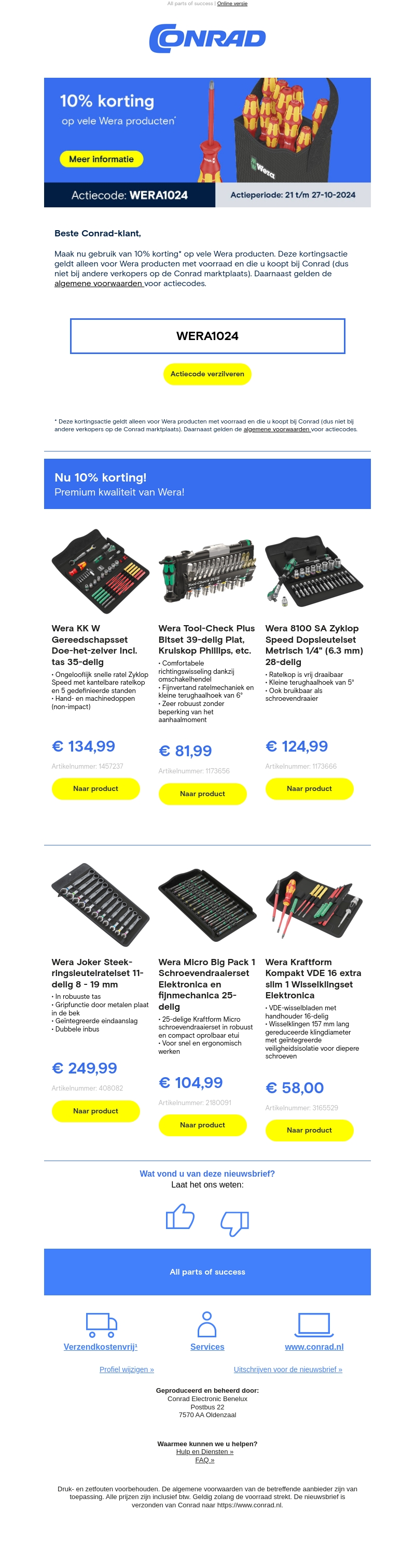 Ontdek nu 10% korting op een breed scala aan hoogwaardige Wera producten bij Conrad. Deze speciale actie is geldig van 21 t/m 27 oktober 2024. Of u nu een doe-het-zelver bent of een professionele monteur, deze aanbiedingen zijn perfect voor u. Bekijk onze geselecteerde sets en mis deze geweldige kans niet. Gebruik de speciale code bij uw aankoop om van deze aanbieding te profiteren. Voorwaarden zijn van toepassing.