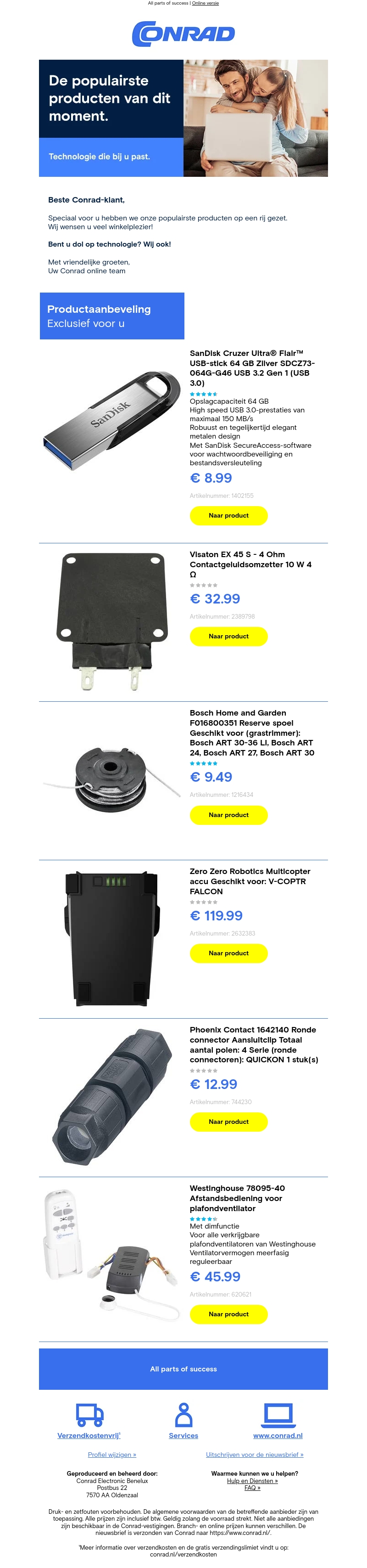 Speciaal voor u hebben we onze populairste producten op een rij gezet. Ontdek de beste technologische snufjes, van USB-sticks tot drone-accu's. Shop nu en geniet van exclusieve aanbiedingen en kortingen.