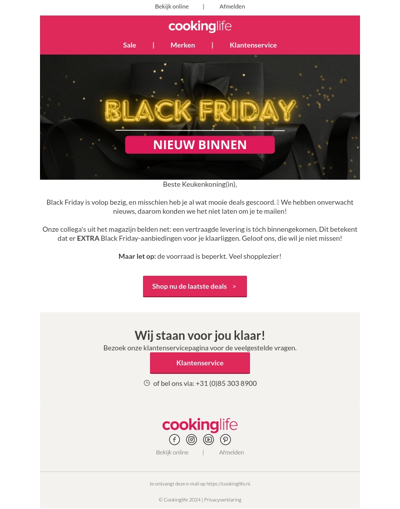 Beste Keukenkoning(in), ontdek de nieuwste Black Friday aanbiedingen bij Cookinglife! Door onverwachte leveringen hebben we extra deals klaarstaan. Mis het niet! Voorraad is beperkt, dus wees er snel bij. Shop nu met veel plezier!