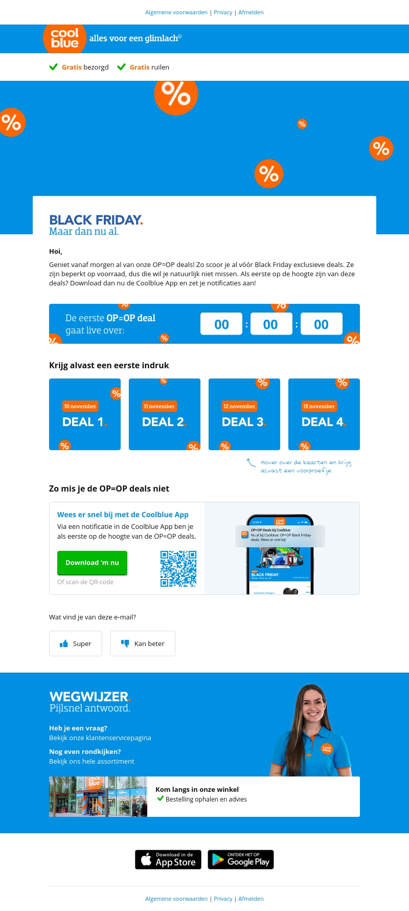 Start je koopjesjacht bij Coolblue met exclusieve Black Friday OP=OP deals. Ontvang als eerste toegang tot deze kortingen en scoor geweldige producten voordat ze uitverkocht zijn. Download nu de Coolblue App en mis geen enkele aanbieding.