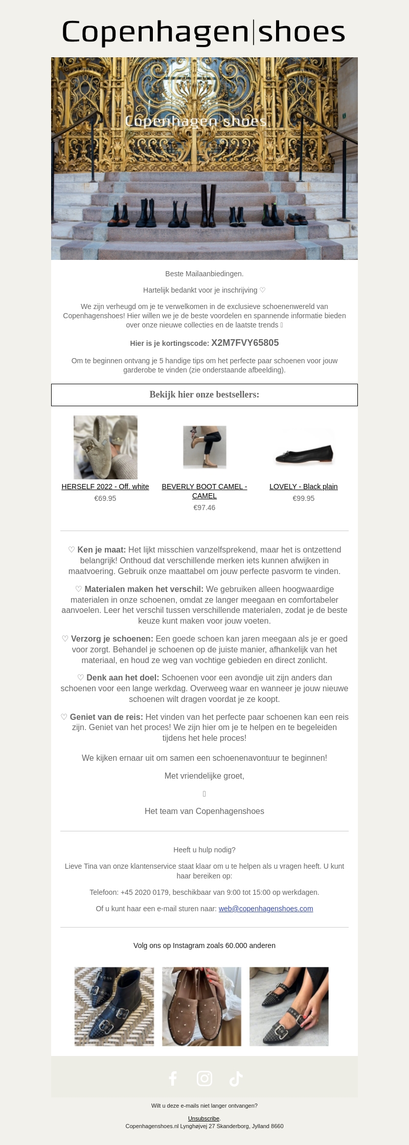 Bedankt voor je aanmelding bij Copenhagenshoes! We zijn verheugd om je te verwelkomen in de exclusieve schoenenwereld. Ontvang nu direct jouw exclusieve 10% korting. Bekijk onze bestsellers en ontdek de nieuwste collecties en trends. Lees ook onze 5 handige tips voor het perfecte paar schoenen.
