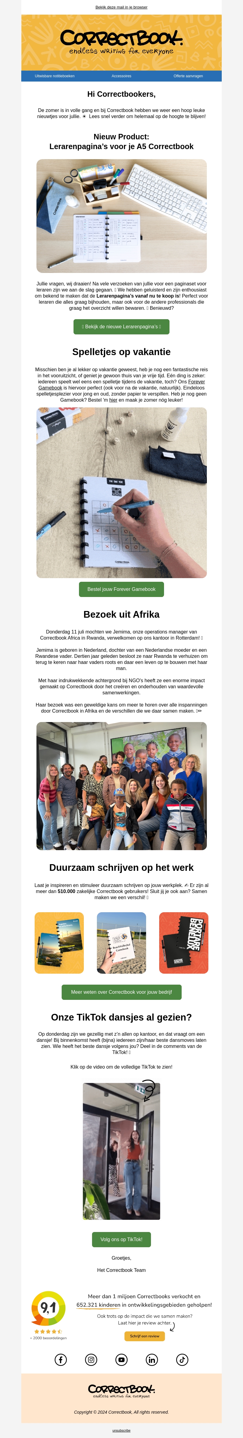 De zomer is in volle gang en bij Correctbook hebben we veel nieuws voor jullie! Bekijk onze nieuwe lerarenpagina's voor het Correctbook A5 en ontdek het Forever Gamebook en meer. Blijf duurzaam schrijven op het werk en neem een kijkje naar onze TikTok dansjes!