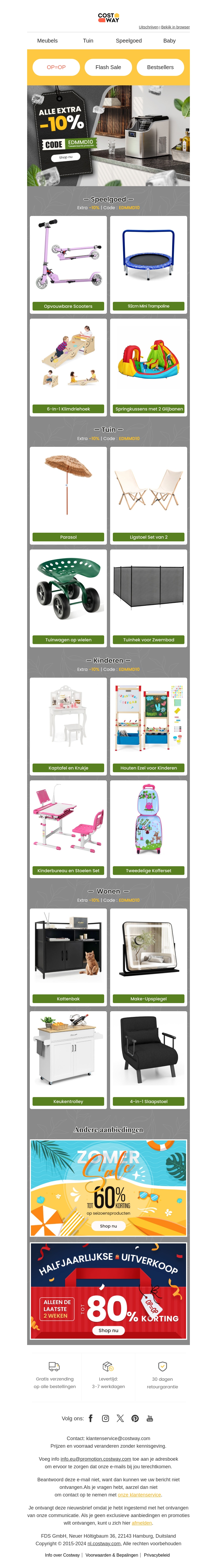 Profiteer nu van 10% extra korting bij Costway!