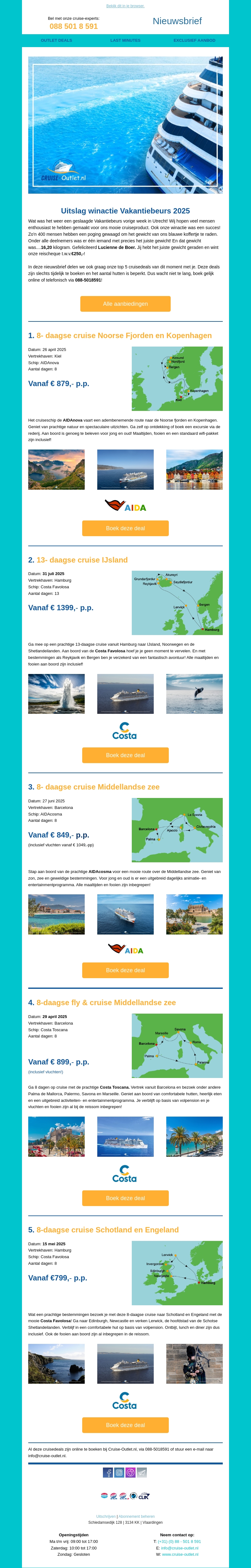 Cruise-outlet.nl top 5 cruisedeals en uitslag winactie vakantiebeurs