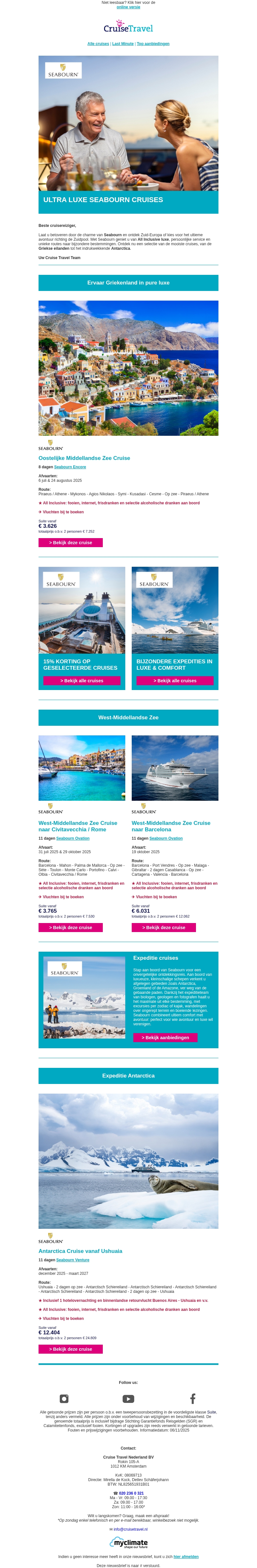 Last Minute luxe Middellandse Zee cruises met Seabourn ✨