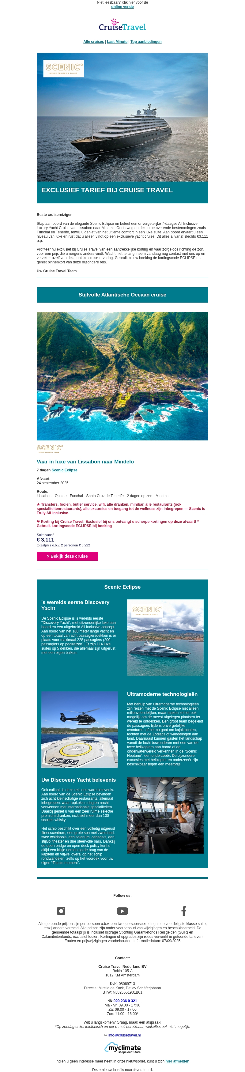 Stijlvol cruisen over de Atlantische Oceaan met exclusieve Cruise Travel korting