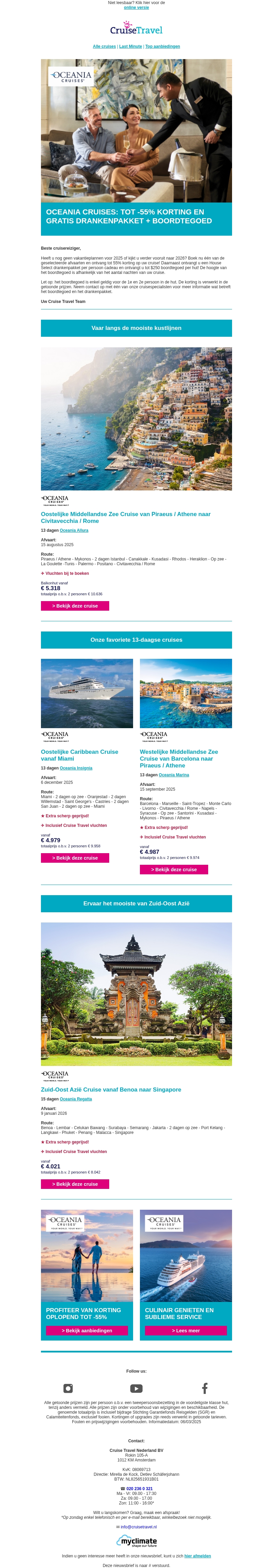 Tot -55% korting + gratis drankenpakket bij Oceania