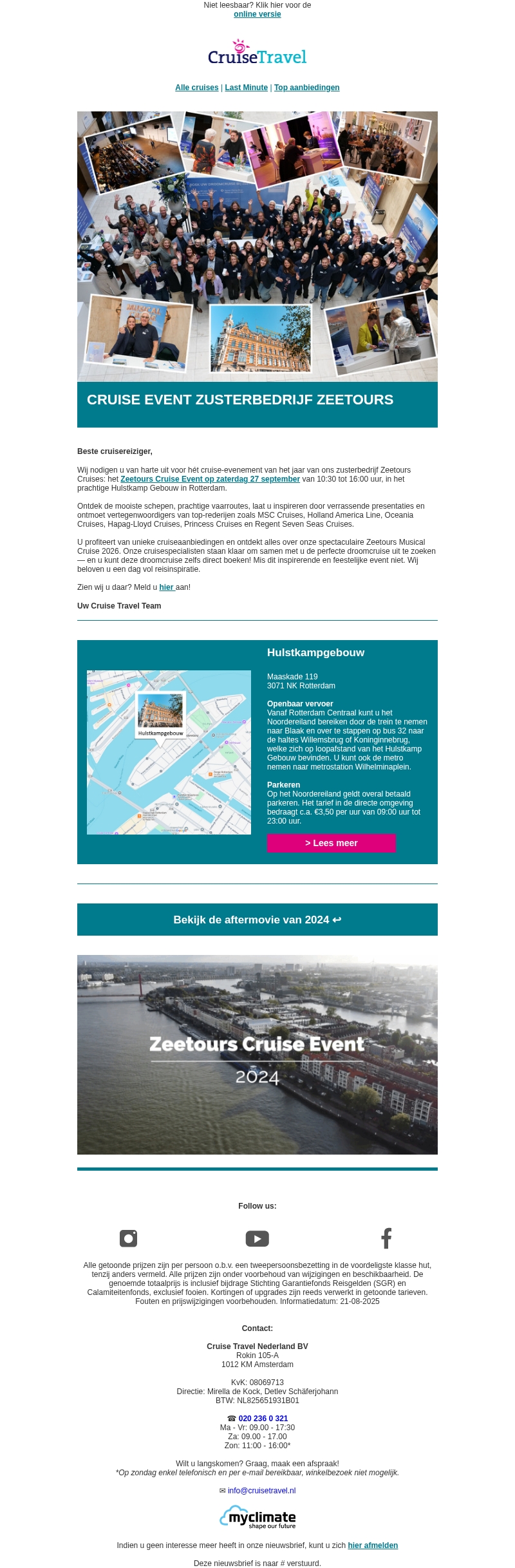 Uitnodiging Cruise Event zusterbedrijf Zeetours