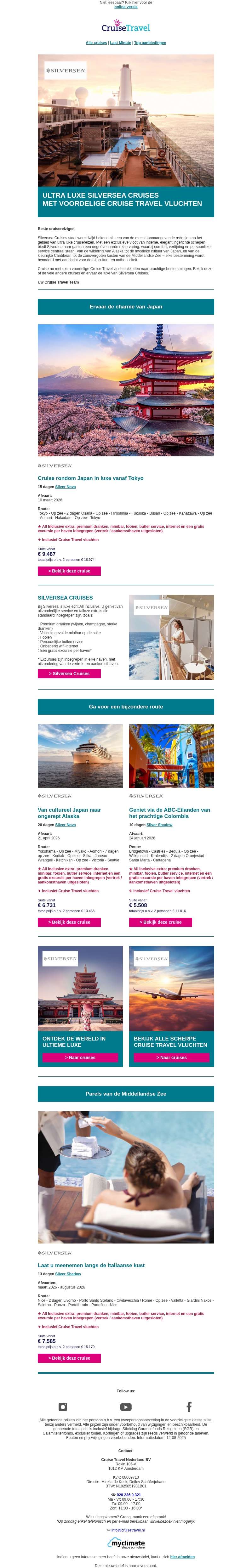 Ultra Luxe Silversea cruises met voordelige Cruise Travel vluchten