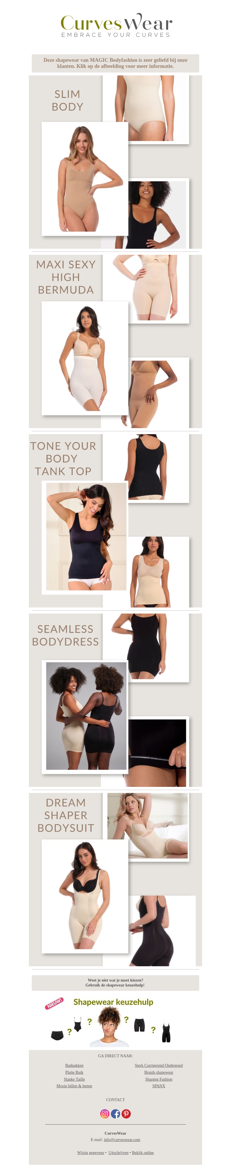Bekijk de top 5 favorieten van MAGIC Bodyfashion, speciaal samengesteld om je silhouet te verbeteren. Van de Slim Body tot de Dream Shaper Bodysuit, ontdek de beste shapewear opties voor elk lichaam en elke outfit. Klik op de afbeeldingen voor meer informatie.