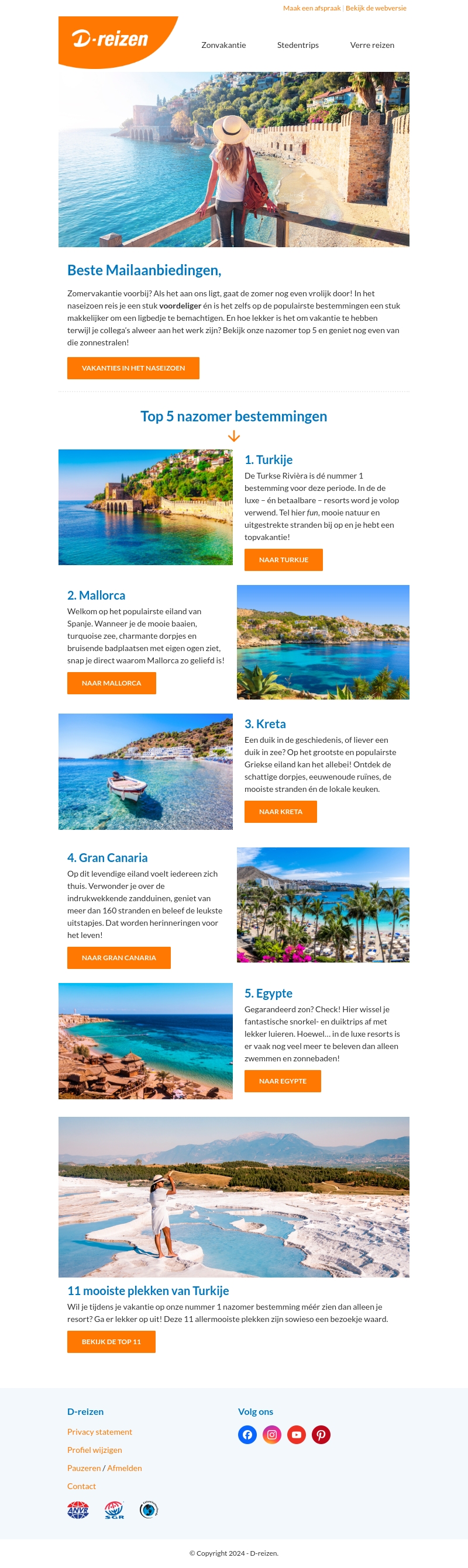 Zomervakantie voorbij? Geen probleem! Het naseizoen biedt geweldige voordelige opties. Ontdek onze top 5 bestemmingen: Turkije, Mallorca, Kreta, Gran Canaria en Egypte, en geniet van een zorgeloze vakantie vol zon en plezier.