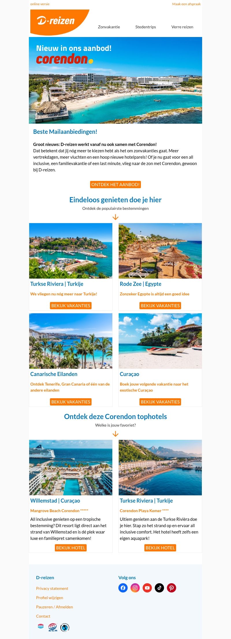 Nieuw bij D-reizen: Corendon in ons aanbod!