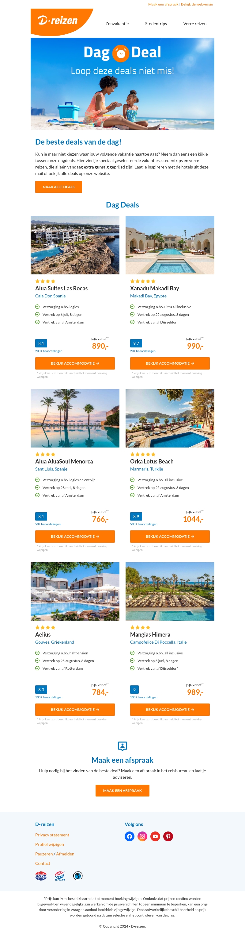 Kun je maar niet kiezen waar jouw volgende vakantie naartoe gaat? Neem dan een kijkje tussen onze DagDeals. Hier vind je speciaal geselecteerde vakanties, stedentrips en verre reizen, die alleen vandaag extra gunstig geprijsd zijn! Laat je inspireren met de hotels uit deze mail of bekijk alle deals op onze website.