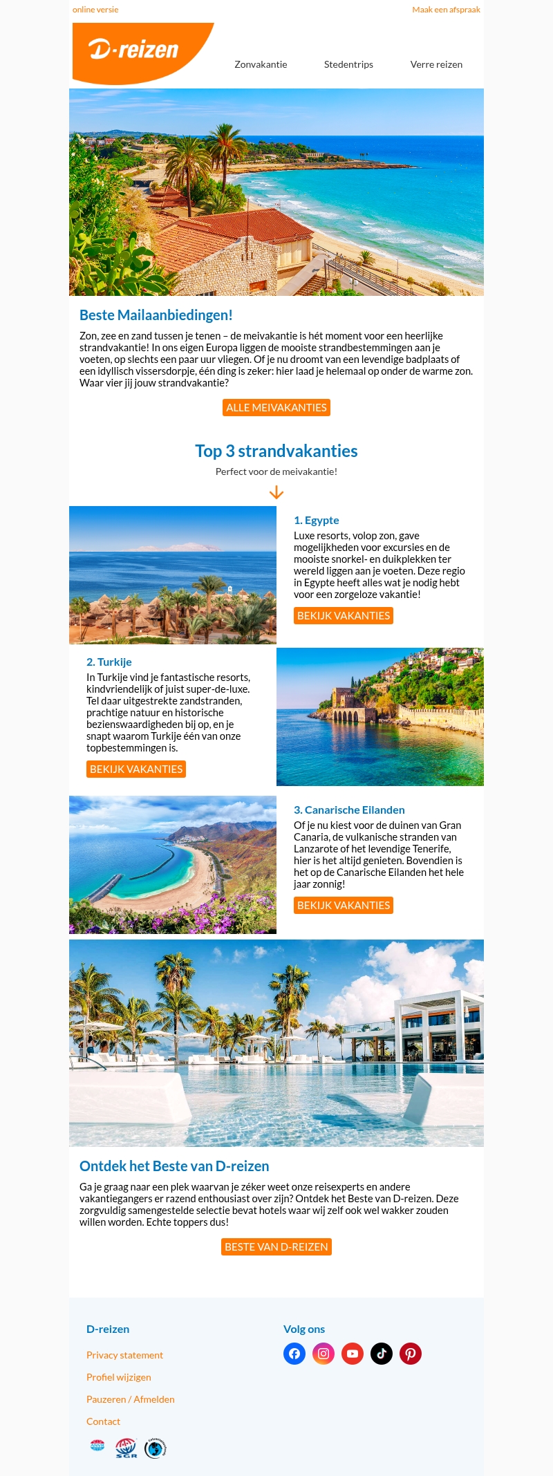 Verwen jezelf deze meivakantie met de meest luxueuze en zonnige strandvakanties. Van de fascinerende kustlijnen van Egypte en Turkije tot de levendige Canarische Eilanden, deze bestemmingen bieden alles voor een zorgeloze ontsnapping. Geniet van duiken, luxe resorts en prachtige landschappen voor ultieme ontspanning.
