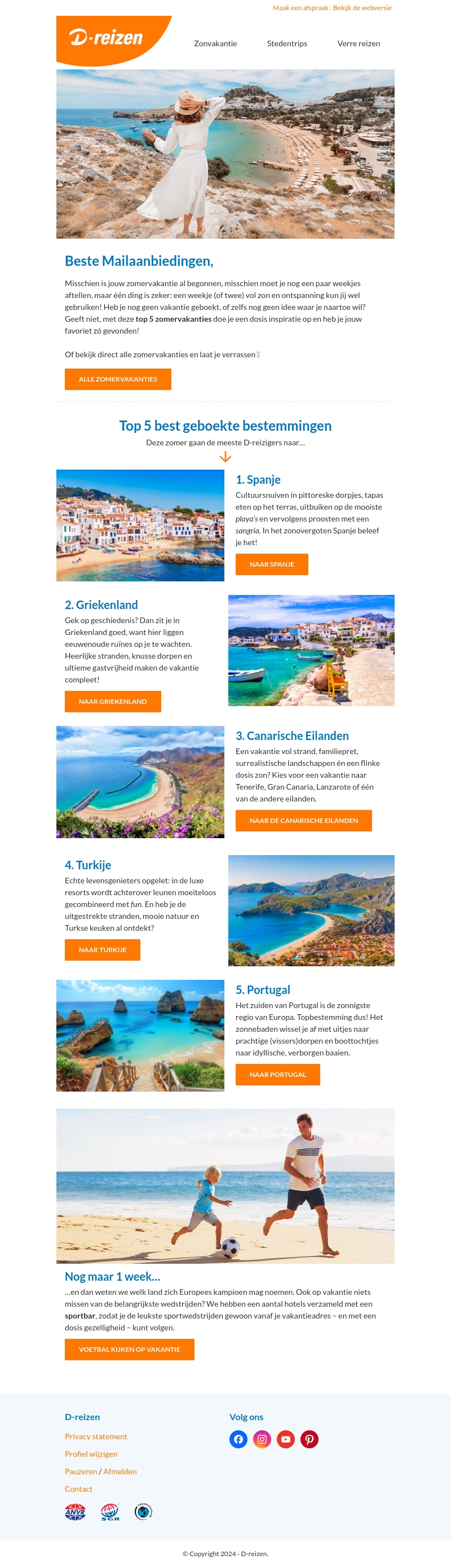 Misschien is jouw zomervakantie al begonnen, maar er is altijd tijd om inspiratie op te doen voor de ultieme vakantie. Bekijk de top 5 populairste bestemmingen voor zomer 2024 en kies jouw favoriete vakantiebestemming!