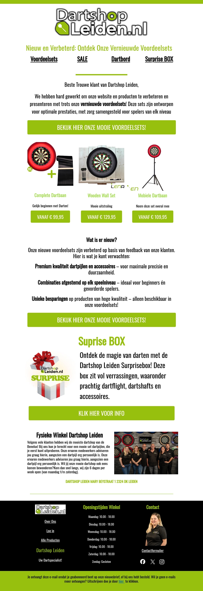 Dartshop Leiden presenteert met trots zijn vernieuwde voordeelsets, ontworpen voor maximale prestaties. Deze sets zijn speciaal samengesteld voor spelers van elk niveau. Ontdek de premium kwaliteit en bespaar op hoge kwaliteit producten. Mis onze Surprise BOX niet, vol met dartmagie!