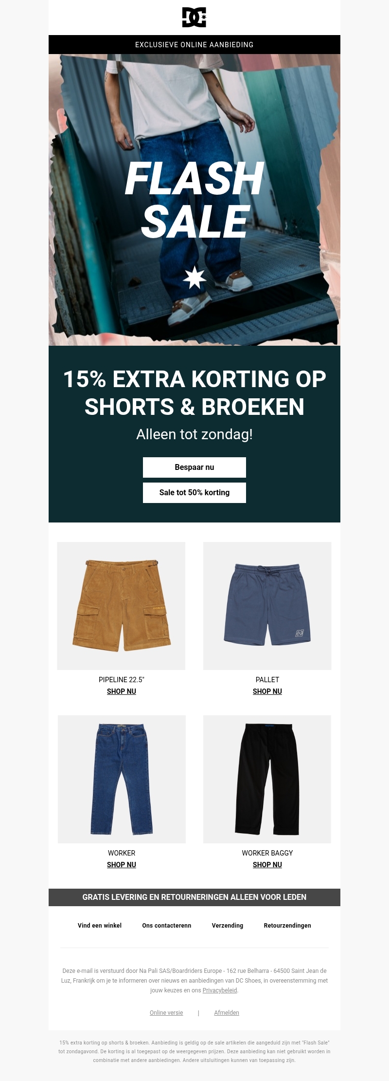 15% extra korting op shorts & broeken