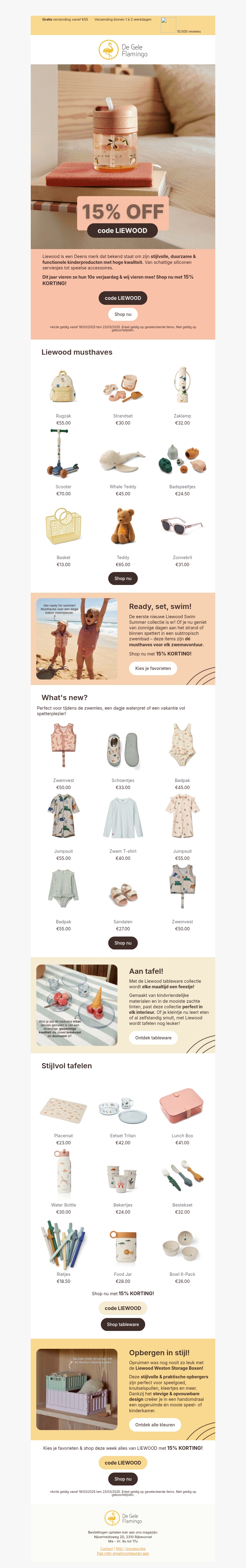 Profiteer van 15% korting op LIEWOOD-producten bij De Gele Flamingo. Ontdek een keur aan kindvriendelijke artikelen, van speelse kleding tot handige accessoires. Gebruik de kortingscode LIEWOOD en bespaar op uw favoriete items. Bovendien hebben we de nieuwste collectie voor u klaarstaan. Winkel vandaag nog en geniet van slimme deals.