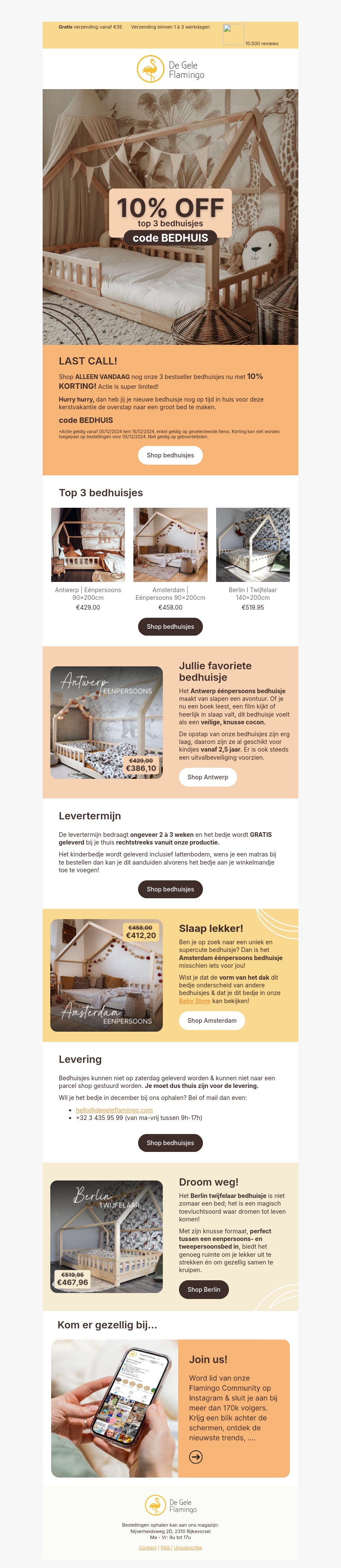LAST CALL! 10% OFF op onze bestseller BEDHUISJES! 🤩