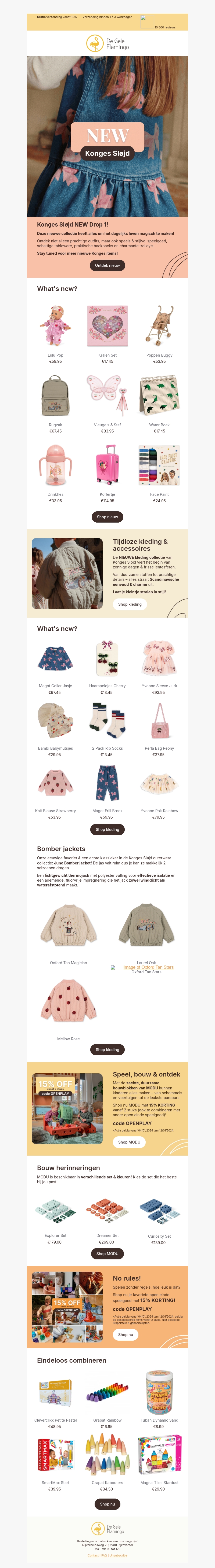 Verken de nieuwe collectie van Konges Slojd met prachtige kleding en accessoires. Ontvang nu 15% korting met de code OPENPLAY. Mis niet de beste deals voor stijlvolle en kwalitatieve items die je kinderen zullen adoreren. Shop de nieuwe drop nu!