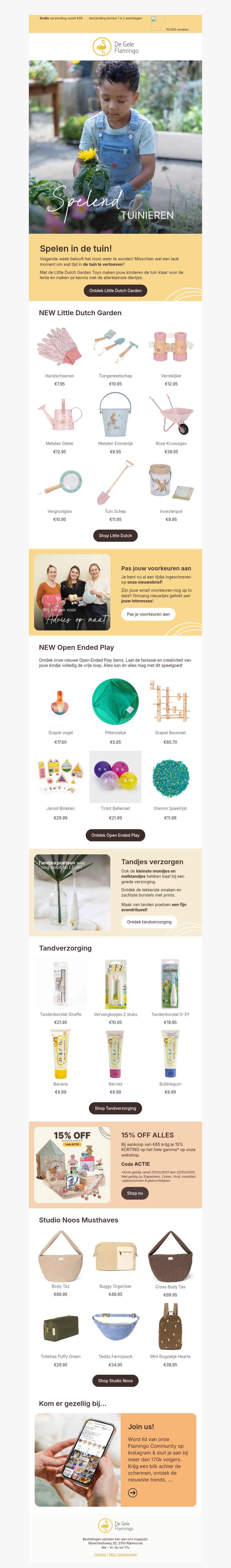 Transformeer de tuin in een speelparadijs voor kinderen met Little Dutch Garden. Van kleurrijke gieters tot schattige kruiwagens, alles is ontworpen om het plezier in de tuin te vergroten. Ontdek ook innovatieve speeltjes en tandverzorging voor de kleintjes. Vergeet niet te profiteren van onze speciale aanbieding!
