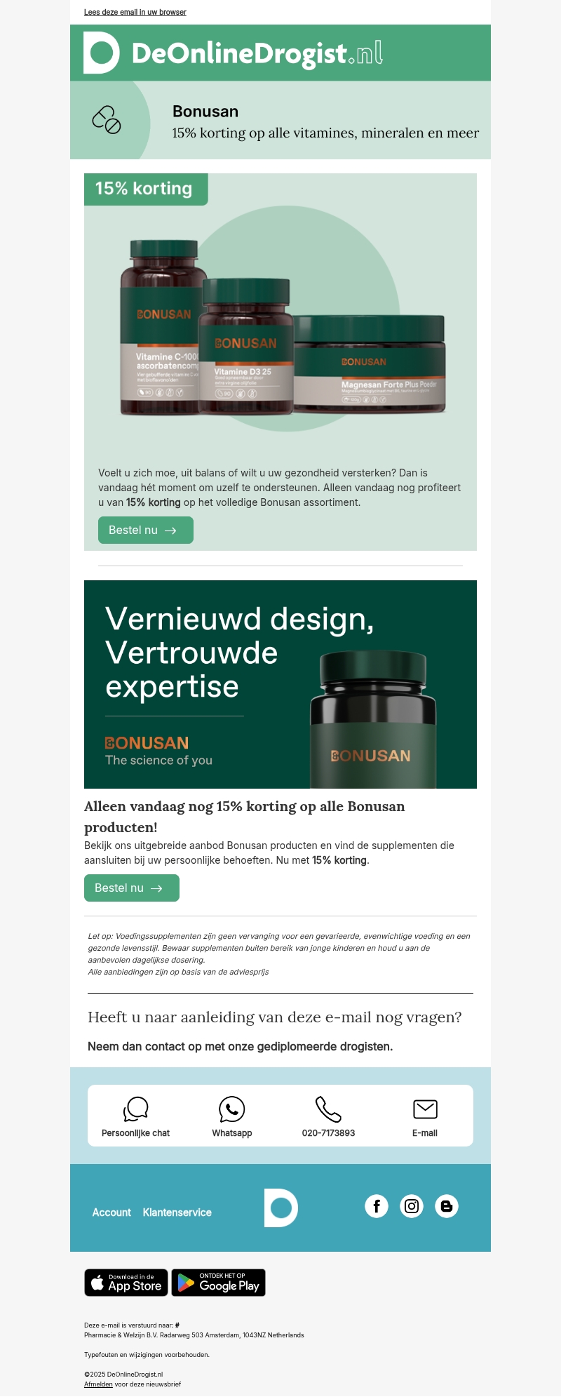 Alleen vandaag nog 15% korting op alle Bonusan producten
