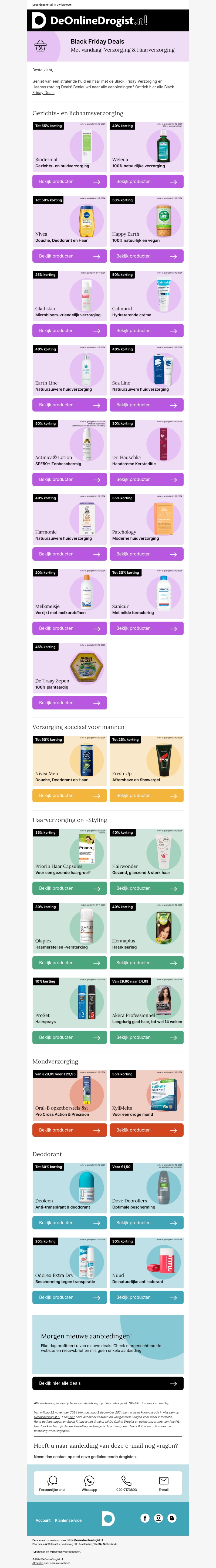 Mis de unieke Black Friday deals niet met kortingen tot 60% op topmerken in verzorging en hygiëne. Profiteer van scherpe prijzen op gezichtsverzorging, lichaamsverzorging, en meer. Geef jezelf of een geliefde de beste zorgproducten cadeau. Bekijk onze selectie en bespaar op je favoriete merken!