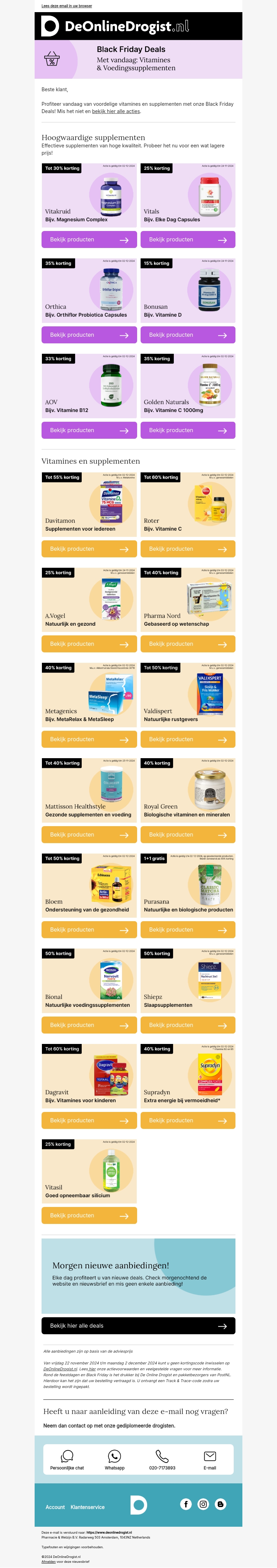 Bezoek DeOnlineDrogist.nl voor spectaculaire Black Friday kortingen op vitaminen en voedingssupplementen. Geniet van tot wel 60% korting op topmerken. Dit is het perfecte moment om te investeren in je gezondheid. Ontdek een breed scala aan producten van hoge kwaliteit tegen ongeëvenaarde prijzen. Wees er snel bij, want de voorraad is beperkt!