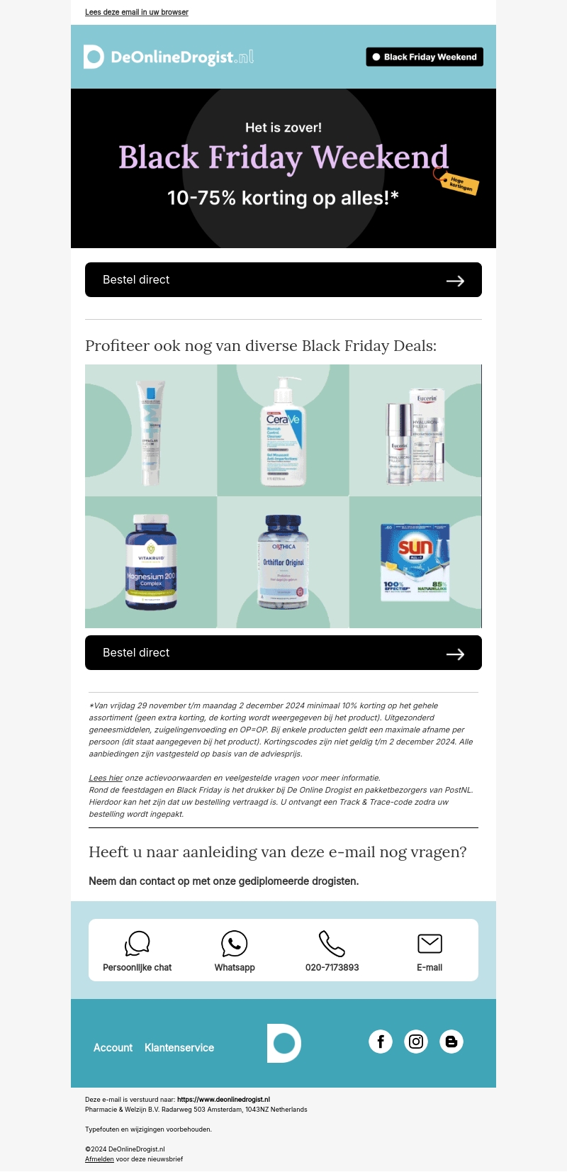 Vier Black Friday met DeOnlineDrogist en profiteer van kortingen tot wel 75% op een breed assortiment. Ontdek geweldige deals op diverse producten, van huidverzorging tot supplementen. De actie geldt tot en met 2 december 2024. Grijp nu je kans en bestel direct jouw favorieten met deze spectaculaire kortingen!