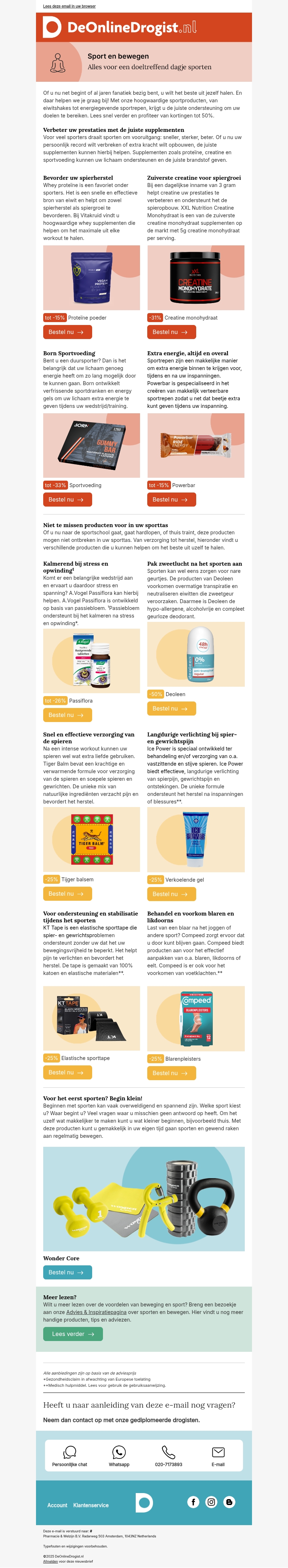 Bent u klaar om het beste uit uzelf te halen tijdens uw sportieve activiteiten? Ontdek de ideale supplementen en producten om uw sportprestaties te verbeteren. Van eiwitpoeders tot powerbars, we hebben alles wat u nodig heeft. Profiteer van aantrekkelijke kortingen en begin uw reis naar een gezondere en actievere levensstijl.