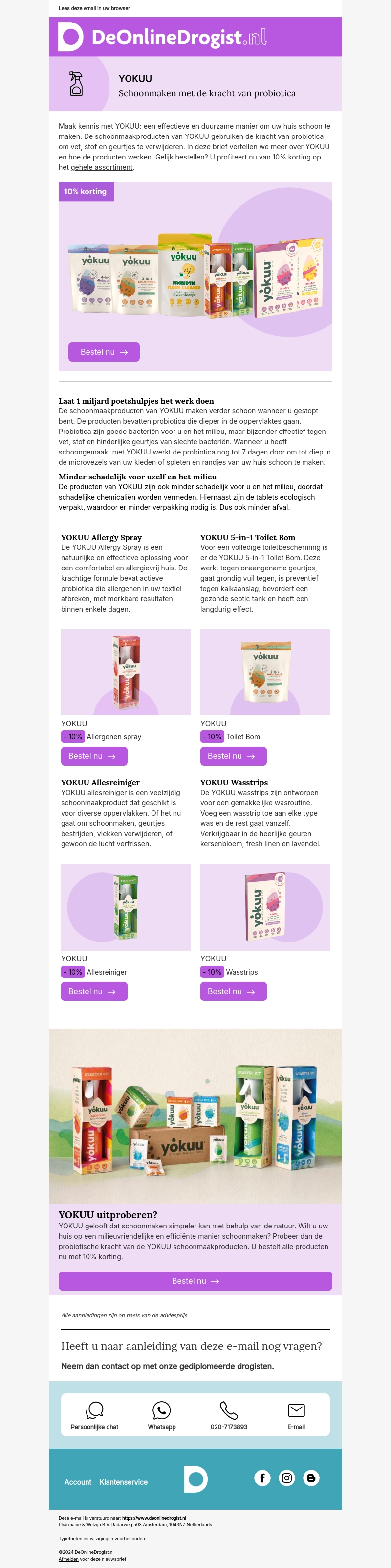 Maak kennis met YOKUU, de duurzame manier om uw huis schoon te maken met probiotica. Verwijder vuil, stof en geurtjes effectief en profiteer van een 10% korting op het gehele assortiment. YOKUU's producten zijn minder schadelijk voor u en het milieu en bieden langdurige bescherming.