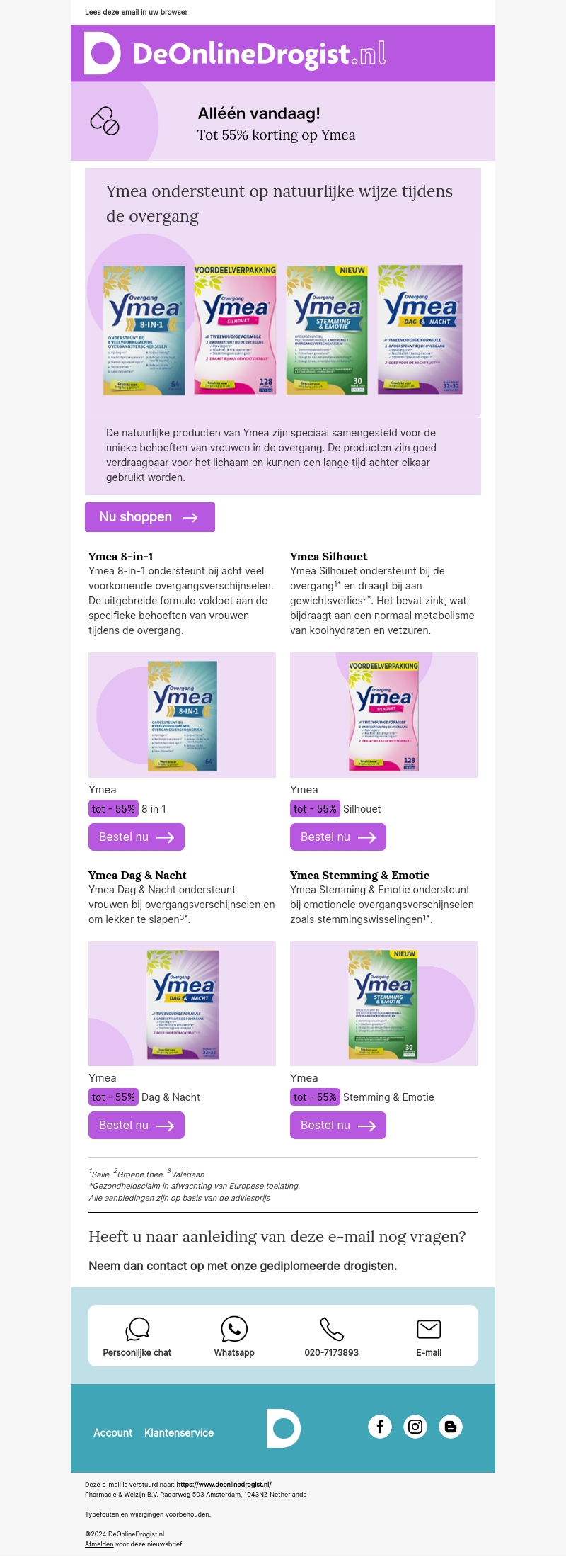 Ontdek de natuurlijke producten van Ymea, speciaal ontwikkeld voor vrouwen in de overgang. Met kortingen tot 55% is dit het perfecte moment om Ymea 8-in-1, Silhouet, Dag & Nacht en Stemming & Emotie uit te proberen. Haal nu je voordeel bij DeOnlineDrogist.nl!