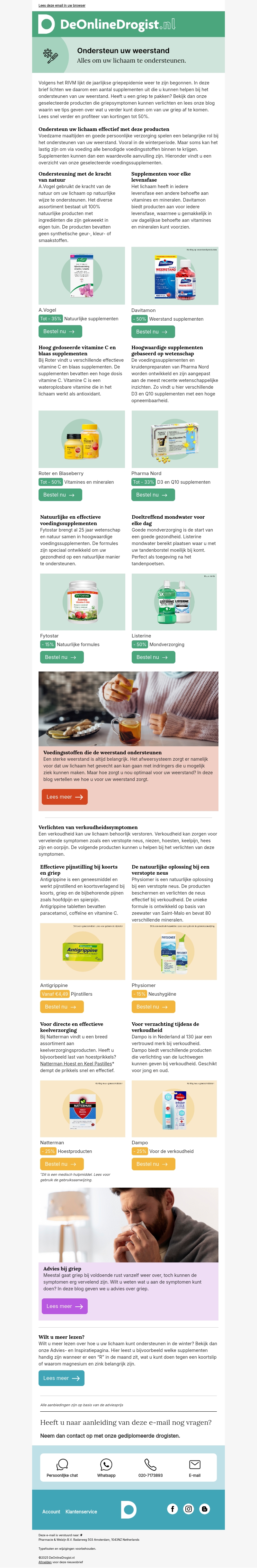 Deze nieuwsbrief biedt een uitgebreide gids om uw weerstand te verhogen tijdens het verkoudheids- en griepseizoen. Ontdek effectieve supplementen en voedingsstoffen die bijdragen aan een beter immuunsysteem. Leer over natuurlijke remedies en praktische tips om symptomen te verlichten. Begrijp het belang van een gezonde levensstijl en voeding om ziekte te voorkomen. Neem actie met aanbevolen producten voor directe verlichting. Lees verder voor meer advies en aanbevelingen.
